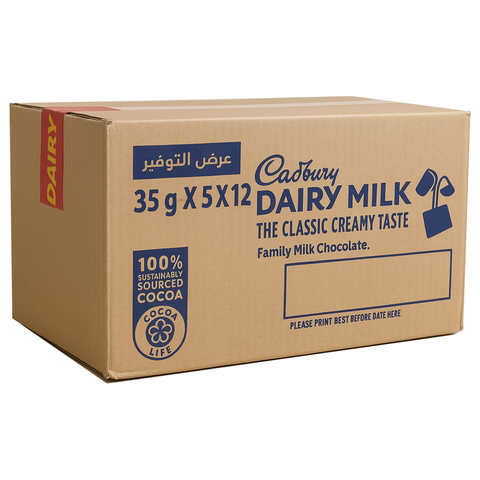 1 Box Cadbury Dairy Milk Chocolate 12 Pouch Pack X 5 Pcs – Full Sealed Box (35g × 60 Bars)